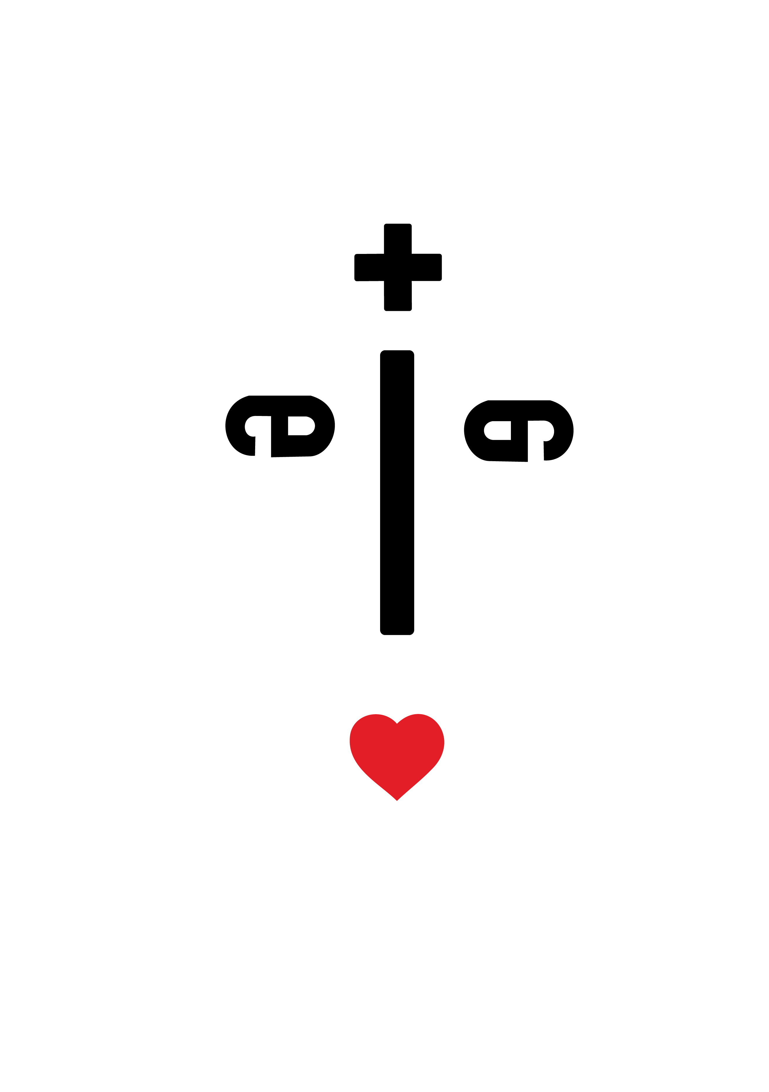 梁雅懿是一位常驻香港的视觉顾问。她的个人标志由她英文名的字母元素构成——名字末两位字母与姓氏首两位字母 “le”,通过对称与重叠形成简洁的图形结构。中央的竖线与上方的加号构成面部的轮廓与鼻梁,下方的红色心形则成为嘴部,整体组合出一张富有象征意味的“脸”。