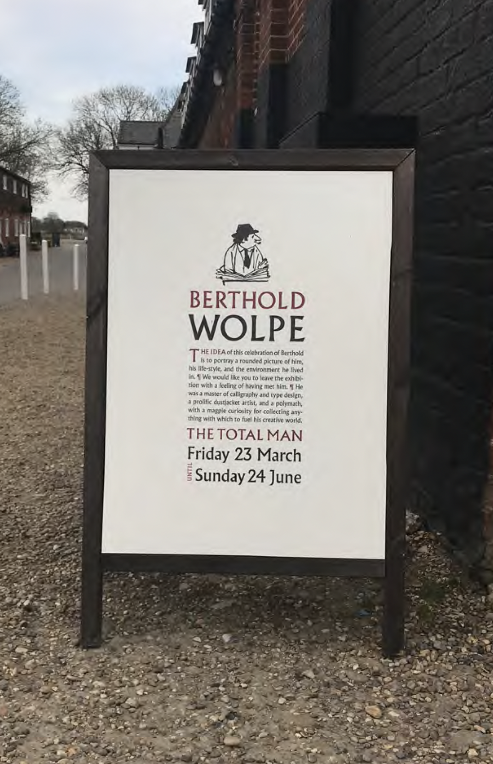 此次纪念标志采用了由查尔斯·莫兹利(Charles Mozley)绘制的沃尔普肖像插图,此图最早用于 1956 年法兰克福书展目录。该标志亦作为募款项目的标识,旨在为伦敦字体博物馆(The Type Museum, London) 筹集资金,用以收藏并保存沃尔普的全部作品档案。