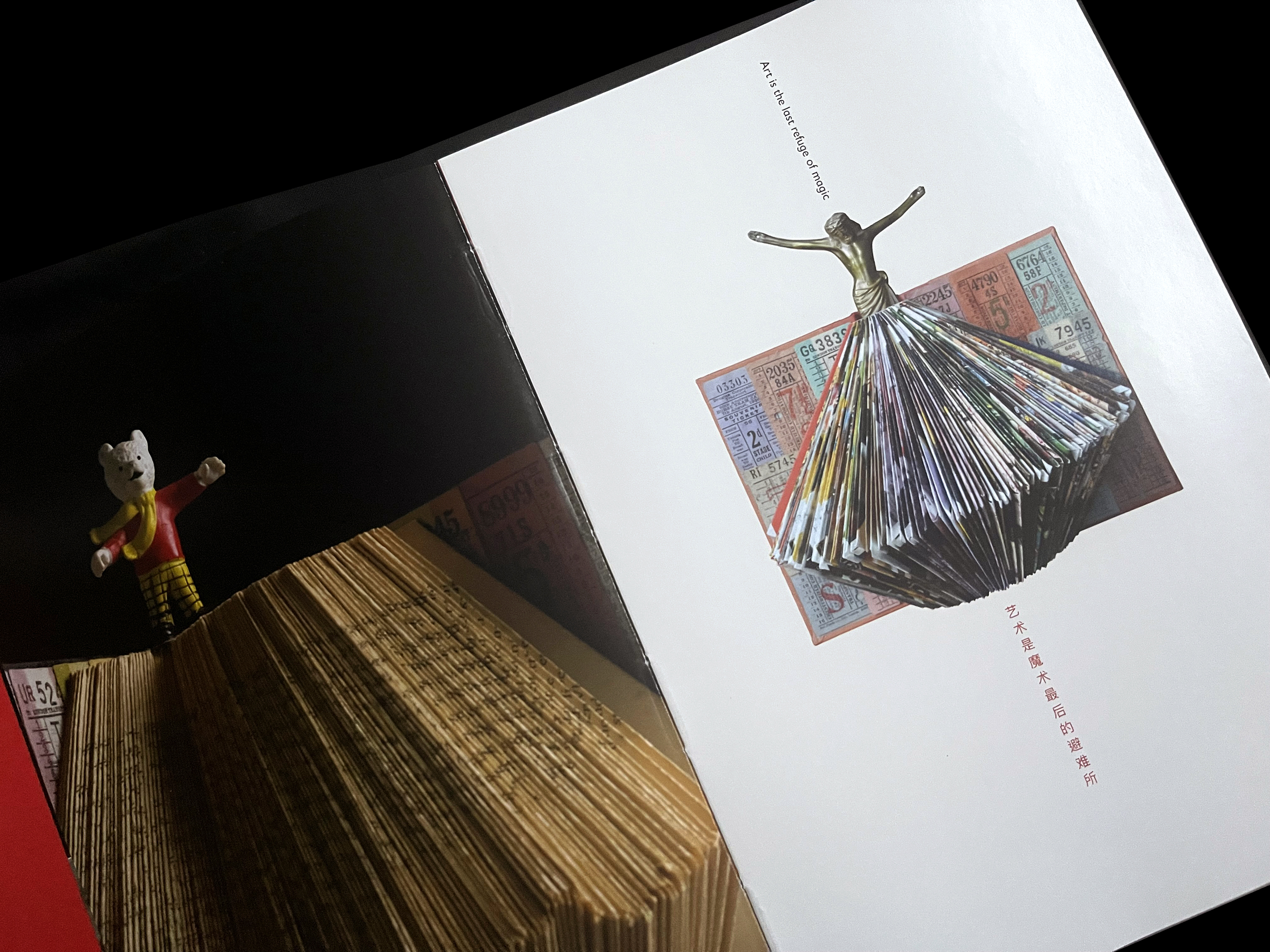 这一系列名为 “书籍-物件-艺术(Book-Object-Art)” 的展览,是他多年实验、重构与探索的成果,挑战了人们对“书籍”这一传统概念的认知,并在过程中发展了全新的艺术形式。高云飞的作品以折叠书页为主要创作方式,常依照书页上的网格结构形成独特造型。作为一位热衷收藏复古小物件的艺术家,他常将这些旧物置于书本顶部,使其在被重新利用的同时,焕发出新的生命与叙事意义。